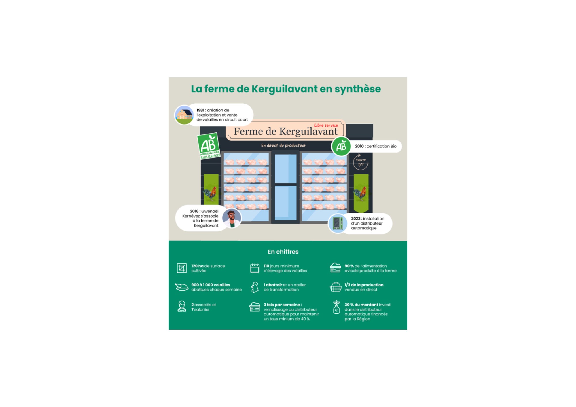 G.K. : L’investissement est tout à fait rentable dans la mesure où nous avons bénéficié d’une subvention régionale couvrant environ 30 % du montant investi. Sans ce soutien, le projet aurait juste atteint le seuil de rentabilité. Le distributeur a permis d’attirer une nouvelle clientèle. Sa localisation est fondamentale : la machine est installée sur une départementale très fréquentée, entre la ville de Quimper et la côte sud du Finistère. Les acheteurs s’arrêtent en rentrant du travail ou de la plage. Mais attention, le distributeur ne fait pas tout. Le remplacement des personnes qui vont prendre leur retraite reste un enjeu clé pour assurer la pérennité de l’entreprise.