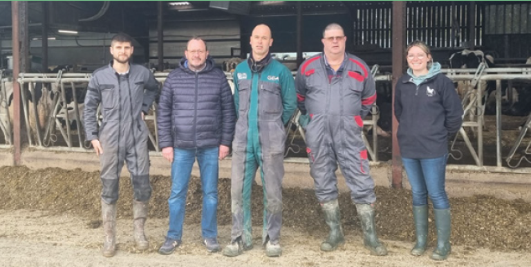 Philippe Fradin : Aujourd’hui on voit 130 vaches laitières et une production qui va atteindre 1,3 million de litres de lait, 2 400 cages mères en lapin et près de 1 000 kWc de production d’électricité. Mais le plus important sur cette photo ce sont les associés et les salariés. Au total, 7 personnes qui travaillent ensemble tous les jours, sans avoir de liens familiaux.